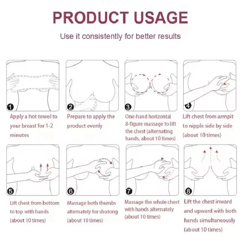 ➤ Reduces fine lines, wrinkles, and sagging around the breast area